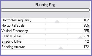 Sélection/Désélectionner 16 - Sur le même calque : Effets/ Factory Gallery B/Fluttering Flag avec ces réglages: