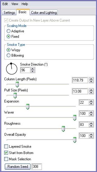 18 - Sur le même calque : Effets/Eye Candy 6 text-selection/ Smoke: Purple haze