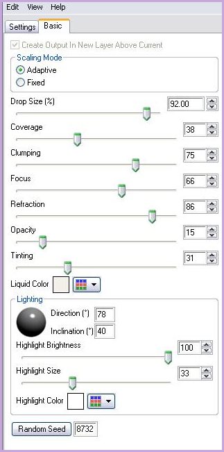 11 - Sur le même calque Effets/EyeCandy 6/Textures/Water Drops Onglet Settings/Large and Messy: Strong Refraction