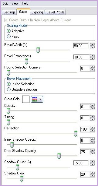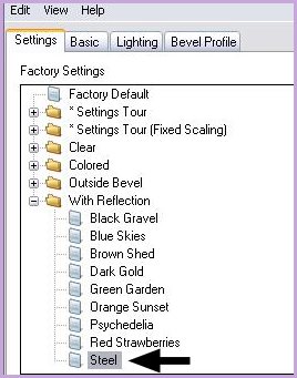 12 - Sur le même calque Effets/Eye Candy 6/Text_Selection/Glass Settings Tour/With Reflection: Steel