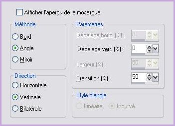 15 - Se placer sur le tube original Effets/Effets d'image/Mosaïque sans jointure avec ces réglages: