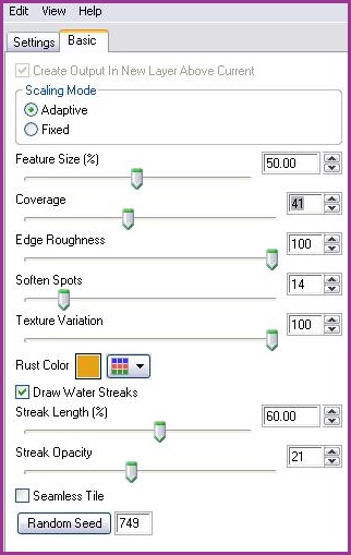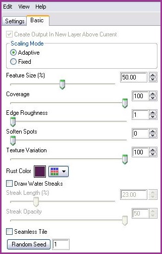 3 - Effets/ Eye Candy 6 Text_Selection Rust: Textures (No Streaks) Deep Purple, Full Coverage Onglet Basic :