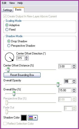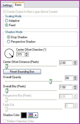 11 - Sur le même calque: Effets/ Eye Candy 6 Text_Selection - Perspective Shadow - Drop (Fixed Scaling) : Angled 2 Pixels Onglet Basic :