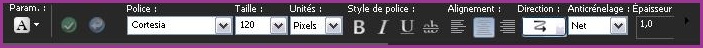 15 - Activer l'outil Texte/Police Cortesia/taille : 120 vectoriel/épaisseur du trait : 1 couleur avant-plan #9b3f93 /couleur arrière-plan #9b3f93