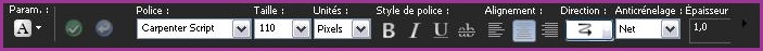 16 - Activer l'outil Texte/Police Carpenter Script /taille : 110 vectoriel/épaisseur du trait : 1 couleur avant-plan #02b4b0 /couleur arrière-plan #02b4b0