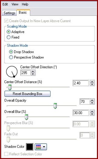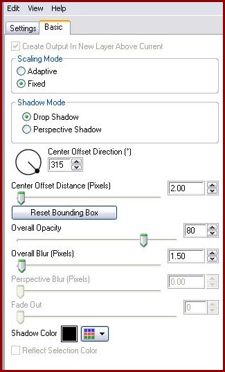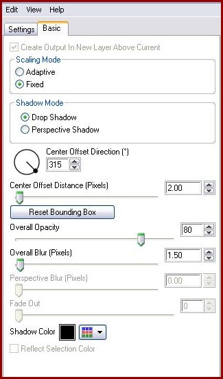 8 - Sur le même calque Effets/Eye Candy 6/Text_Selection / Perspective Shadow Drop ( Fixed Scaling)-Angled 2 pixels Onglet Basic : réglages précédents