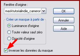 10 - Activer le masque masktutorialindie_camerontags.png Calques/Nouveau calque de masque/à partir d'une image/Ajout d'un masque à partir d'une image sélectionner le masque masktutorialindie_camerontags.png cocher luminance d'origine /cocher inverser les données du masque