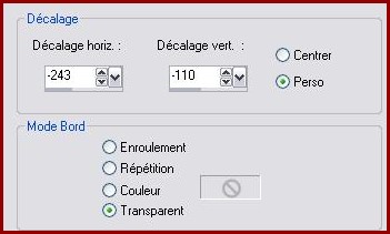 18 - sur le même calque Couches/Dupliquer Image/Redimensionner à 80%/décocher " tous les calques" Effets/Effets d'image/Décalage:
