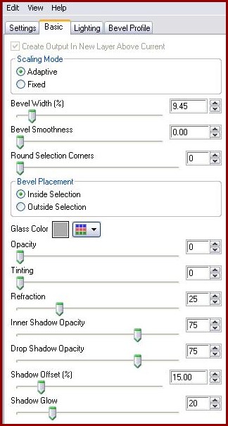 26 - Sur le même calque Effets/Eye Candy 6/Text_Selection /Glass/ Colored - Clear Low Refraction Onglet Basic :