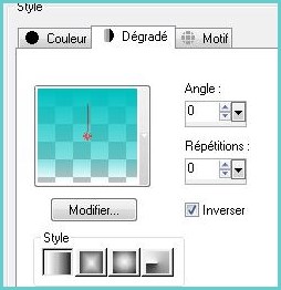 14 - Placer la couleur #00c0c0 en avant planRechercher le dégradé de fondu premier-plan configuré un dégradé linéaire angle: 0/répétition : 0/inverser coché