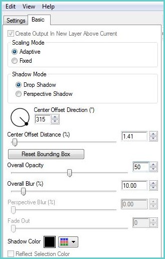 29 - Effets/ Eye Candy 6 / Text_Selection - Perspective Shadow/ Drop Height 1 Basic : réglages du n° 21