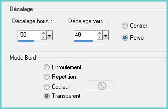28 - Activer le tube imagetutorialsignos_camerontags.png Modifier/Copier/Modifier/Coller comme nouveau calque **Effets/Effets d'image/décalage réglages suivants :