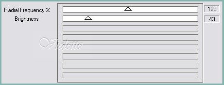 4 - Réglages/Réduction rapide du bruit 5 - Effets/Simple/Quick Tile 6 - Effets/ Krusty's FX vol III 1.0/Radial Texturizer avec ces valeurs: