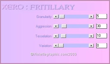 27 - Effets/ Xero/ Fritillary avec les réglages ci-dessous: