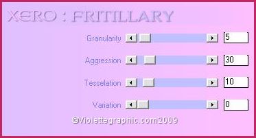2 – Ouvrir une nouvelle image transparente de 800 x 550 pixels Remplir de couleur #9a8581 3 -Effets/Xero/Fritillary: