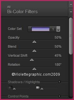 6 - Calques/Fusionner les calques visibles 7 - Effets/Nik Color Efex Pro 3.0/ Bi-Color Filters avec ces réglages :
