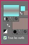 15 - Placer en avant-plan la couleur # 80ffff et en arrière-plan la couleur #9a8581 Configurer un dégradé linéaire angle: 0°/Répétition: 1