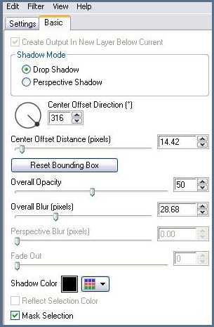 8 - Effets/Eye Candy 5 Impact /Perspective Shadow/ Drop Shadow Blurry Onglet Basic : réglages ci-dessous :