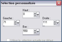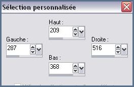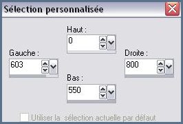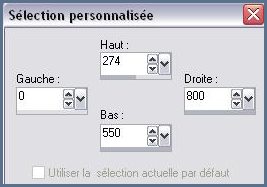 9 - Activer le premier calque ( celui de la texture ) Calques/Nouveau calque Activer l'outil sélection/clic sur Sélection Personnalisée/Placer ces chiffres: