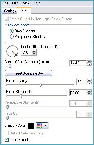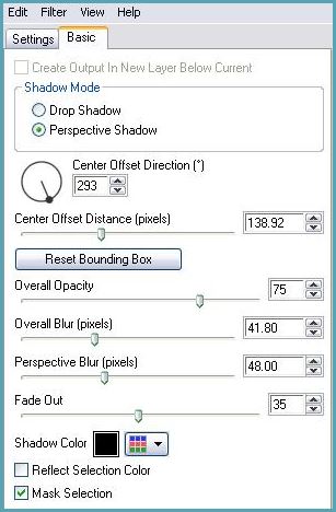 18 - Effets/ Eye Candy 5 Impact/ Perspective Shadow Wide Perspective Shadow, in Front Onglet Basic :
