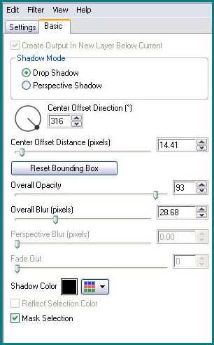 16 - Effets/Eye Candy 5 Impact /Perspective Shadow/ Drop Shadow Blurry Onglet Basic :