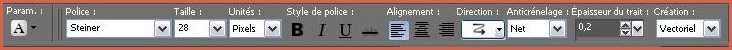 31 - Activer l'outil Texte/Police Steiner/taille : 28 avant-plan fermé /couleur arrière-plan #e16647