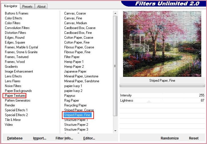 5 - Effet/ Unlimited 2.0 /Paper Textures /Striped Paper Fine réglages suivants :