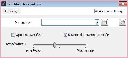 7 - Réglages/Equilibre des couleurs réglages suivants :