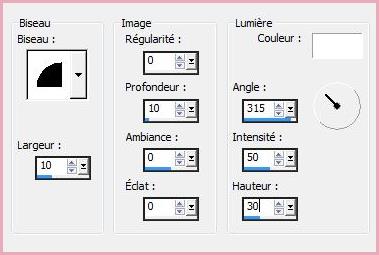 5 - Effets/Effets 3D/Biseautage Intérieur réglages suivants :