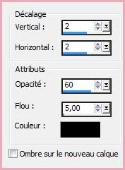 2 - Effets/Effets 3D/Ombre Portée réglages suivants :