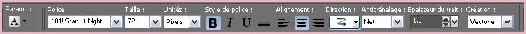26 - Activer l'outil Texte/Police 101!Star Lit Night/taille : 72couleur avant-plan # ece9e7/couleur arrière-plan #e3bac3