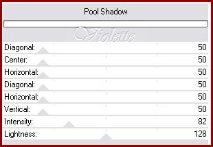 Partie 1 1 - Ouvrir une image transparente de 650 et 500 pixels Remplir de couleur #800000 2 - Effets/Greg's Factory Output Vol. II_Pool Shadow :