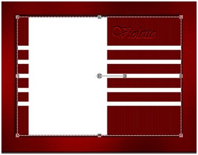 6 - Sélections/Sélectionner Tout Sélections/Modifier/contracter de 50 pixels Calques/Nouveau calque Remplir de couleur #800000 Effets/Effets de Textures/Stores: