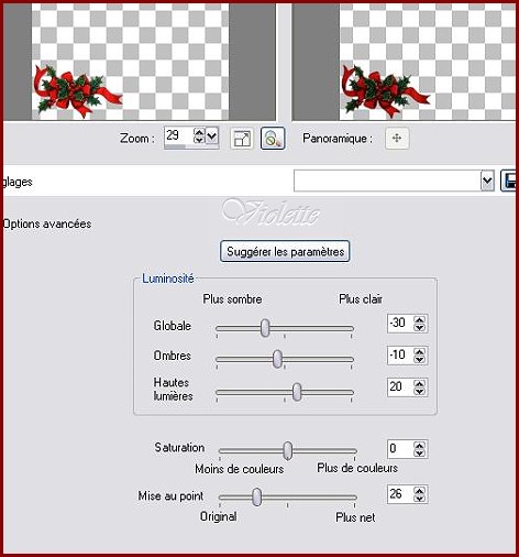 ***** Ouvrir le tube "GGChristmasBow" Edition/Copier/Edition/Coller comme nouveau calque Placer sur le côté gauche Réglages/Traitement optimal des photos: