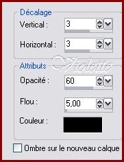 Effets/Effets 3D/Ombre Portée : 3/3/60/5/noir