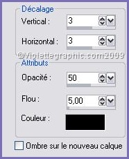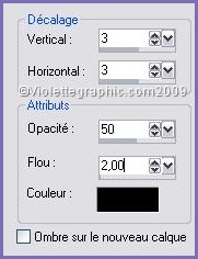 28 - Sélection/sélectionner tout Sélection/Flottante Sélection/Statique 29 - Effets/Effets 3D/Ombre Portée : 3/3/50/5/noir 30 - Calques/Fusionner les calques visibles Ne pas désélectionner