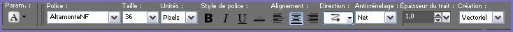 Partie 5 21 - Activer l'outil Texte/Police AlatamonteNF/taille : 36/Trait: 1 pixel/Vectoriel