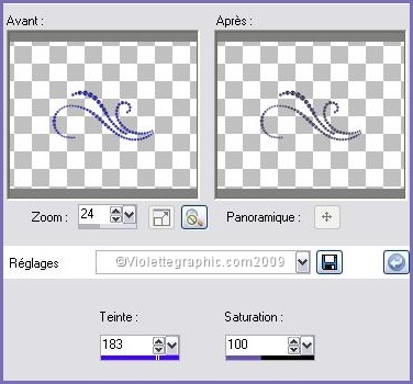 26 - Ouvrir le tube "clarey-diamantedoodles Edition/Copier/Edition/Coller comme nouveau calque Image/Redimensionner à 80%/décocher " tous les calques" Placer sur le côté droit 27 - Réglages/Teinte et Saturation/Coloriser: