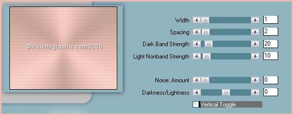 2 - Ouvrir une image transparente de 650 et 500 pixels remplir de dégradé 3 - Réglages/Flou/Flou gaussien : rayon : 204 - Effets/Photo-Effex/Scanlines avec ces réglages :