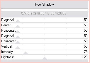 32 - Image/Ajouter des bordures: 2 pixels couleur " 33 - Image/Ajouter des bordures: 30 pixels couleur blanche Sélectionner la bordure avec la baguette magique ( Tolérance et Progressivité à 0 ) remplir de dégradé établi au départ 34 - Effets/ Greg's Factory Output Vol. II_ Pool Shadow :