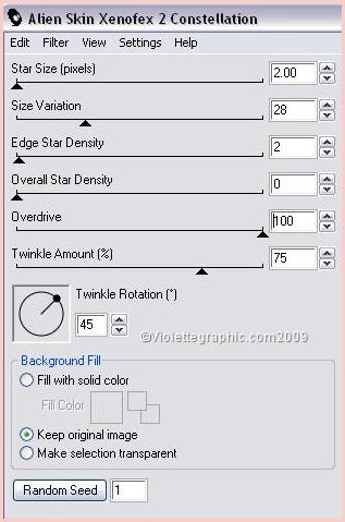 *** 35 - Fermer les calques 2 et 3 Placez vous sur le calque 1 Effets/Alien Skin Xenoflex/Constellation :