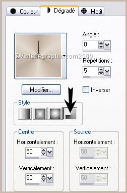 *** Ouvrir les tubes , les dupliquer et fermer les originaux Placer le masque dans le dossier "Masques" de My PSP Files *** Partie 1 1 - Placer en avant-plan la couleur #bfad9d et en arrière-plan la couleur #e2dace Configurer un dégradé radial/Répétitions: 5/Inverser non coché