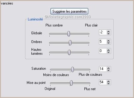 Placer comme sur l'image finale Réglages/Netteté/Netteté
