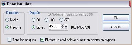 Partie 6 21 - Ouvrir le tube "pine_flower "Edition/Copier/Édition/Coller comme nouveau calque 22 - Réglages/Teinte et Saturation/Coloriser réglages précédents 23 - Image/Rotation libre de 45° à gauche