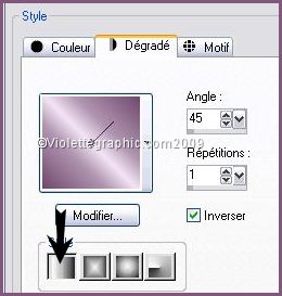 *** Ouvrir les tubes , les dupliquer et fermer les originaux Placer le masque dans le dossier "Masques" de My PSP Files Ouvrir la police et mettre en icône *** Partie 1 1 - Placer en avant-plan la couleur #f1e2f2 et en arrière-plan la couleur #Configurer un dégradé linéaire angle: 45°/Répétition: 1/Inverser coché