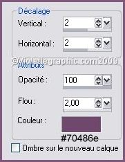 8 - Effets/Effets 3D/Ombre Portée : 2/2/100/2/couleur #70486e