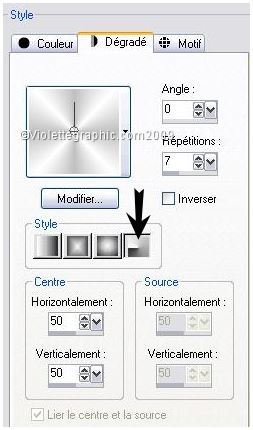 *** Ouvrir les tubes , les dupliquer et fermer les originaux Ouvrir la police et mettre en icône *** Partie 1 1 - Placer en avant-plan la couleur # c0c0c0 et en arrière-plan la couleur #ffffffConfigurer un dégradé radial/angle : 0//Répétitions: 7