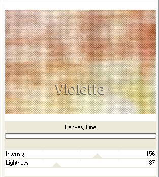 2 – Ouvrir une image de 650 x 450 pixels /Sélection/ Sélectionner Tout 3 - Activer le gh.texture15/ Edition/Copier/Edition/coller dans la sélection Désélectionner 4 – Effets/Unlimited/paper Textures/Canvas Fine