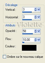 10 - Activer le tube Mtm_bloemen » /Image /Redimensionner à 60% Edition/Copier/Edition/coller comme nouveau calque Placer dans le coin supérieur gauche Effets /Effets 3D/Ombre Portée : 3/3/58/10/noir