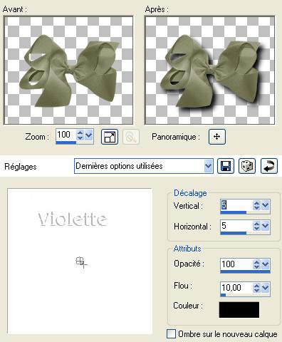 16 - Activer le tube Se_Bow_8 sélectionner le calque 2 Edition/Copier/Edition/coller comme nouvelle image Image /Redimensionner à 75% Edition/Copier/Edition/coller comme nouveau calque Placer dans le coin inférieur droit Effets /Effets 3D/Ombre Portée : 2/2/79/5/noir